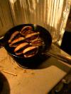 中身を食べる果物だという印象が 強いと思います。 が、ここではそうではありません。 皮だけを食べるのです。 中身に肉やシメジなどで作った餡をいれて焼いたり、 きざんで味噌炒めにしたりするのです。 |