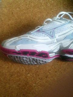 いい加減ヘタレてたトレーニング用のシューズを新調しました。ブランドは「どうしようもなく地味な」Mズノ指定で(笑)でもちょっと派手なカラーリングですよね?何故か私の足とトレーニング状態に一番合ったのがコレだったの。ちなみにバーゲン品(苦笑)どうせ私の足はバーゲン程度ですよふん。