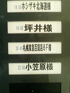本日の写真…札幌駅裏の宴会場で「本日のご予約様」だって…(笑)。