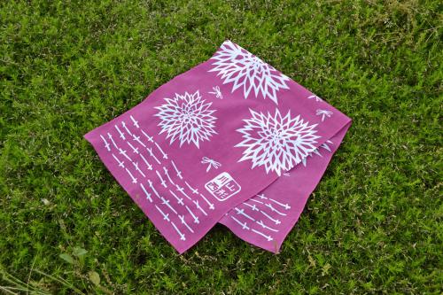 川西町の花として親しまれているダリアをモチーフに、深みのある紅色でシックに仕上げた一枚です。切り絵風のデザインがどこか懐かしく、落ち着いたレトロな雰囲気が漂う手ぬぐいは、普段使いはもちろん、贈り物としてもおすすめです。