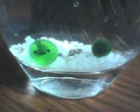 「マリモが元気になるミネラル鉱石入り」というのにそそられ、「で、これってマリモ何個入ってるんですか?2個はないとさびしいんですけど…」と店員さんに尋ねたら「大丈夫ですよ、2個入ってます」と言われたから買ってきたのに、マリモは1個でもう1つはビー玉じゃーん!(;;)マリモめちゃくちゃ小っちゃいし…。そりゃぁこのビー玉もかわいいけどさっ… でも、だからって、開けた缶の中にほおっておいたらますます可哀そう…。アエルレディオが終わるときにジョイナススクエアDのK太さんがプレゼントしてくれたお花の器がちょうどよさそうだったので、あけてみました。うん!なかなかよい! でもな…今度また夫が出張するとき相棒買ってきてもらわなくっちゃ。 ◆まりもについて@阿寒観光汽船 |