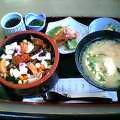 ウニ丼とイカ刺。相方のビンチョウマグロ丼も大当たりでした!