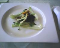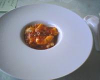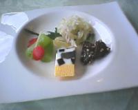 □冷菜四種盛り合せ 一番手前は、ピータンの白身部分と黄身部分をバラして粗く刻み、玉子の白身と黄身・2色のムースでまとめた、ワザありの1品。 ピータンって今までスライスしか食べたことなかったわ〜 左のマリネの赤は、桜の花と花びらの形をしたショウガ。 今年のサクラの開花、山形は4/19と予想されていますが、ちょっと先取り♪ 奥、ふだん「中華クラゲ」しか食べてないから(アレはアレで大好きなんだけど♪)「あぁ自然なお味〜…身(?)が厚い〜…」(笑) ◆ホテルキャッスル(山形市) ホームページは作り直したほうがいいと思うなぁ… |