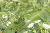 そして、1月中旬には着果させるためのホルモン処理がスタート。開花に合わせ、霧吹きでホルモン剤をかけていきます。「1本の株につき20数花ずつ行います」。と聞けば簡単そうですが、約300坪の広さのハウスにある花の数は何万花。光がまんべんなく当たるよう、余分な葉を取りながらと、もっとも手間がかかるのがこ の作業です。 |