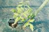 そして、1月中旬には着果させるためのホルモン処理がスタート。開花に合わせ、霧吹きでホルモン剤をかけていきます。「1本の株につき20数花ずつ行います」。と聞けば簡単そうですが、約300坪の広さのハウスにある花の数は何万花。光がまんべんなく当たるよう、余分な葉を取りながらと、もっとも手間がかかるのがこ