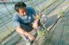 「地面に直接植えずに立ったまま作業ができる高設ベッドを導入し、寒い時期に根の活性を高めるための温水パイプを設置するなど、画期的な方法を積極的に取り入れています。「培養土は有機質含量が高い、天然土壌改良材のピートモスを入れたもの。