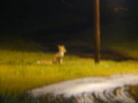 夜のコテージ。外灯を何気に見るとその下にはきつねとあなぐまが仲良くえさを探しに来てました。