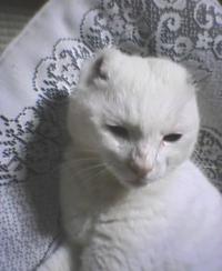 みてそのまま!雪だるま猫☆わたしの家で飼っている猫です。病気で耳をきっちゃったのです(泣)でもなんかかわいいでしょ☆ぜひ雪だるまクラブのマスコットに☆(笑) 中津川住民より☆