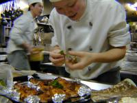 厨房の高橋ちかこさん。今日は45名の日帰り宴会のオードブル作り。せっせと手際よく仕事をこなします。こちらはオーブンから出たばかりのタンドリーチキン。オードブルはその都度メニューも違うし料理人のアイディアの出し合う場所でもあるのです。すべて手作りのオードブル、みんなでワイワイいかがですか?お一人様2000円〜。
