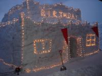 ホテル「フォレストいいで」では、毎年恒例となった「雪のお城で晩餐会」のイベントが2月のとある1週間を限定して行われる。 名のとおり、ホテルフォレストに宿泊、従業員創作の「雪のお城」の中で夕食(洋食フルコース晩餐会)の一風変わった形式で行われるのだ。