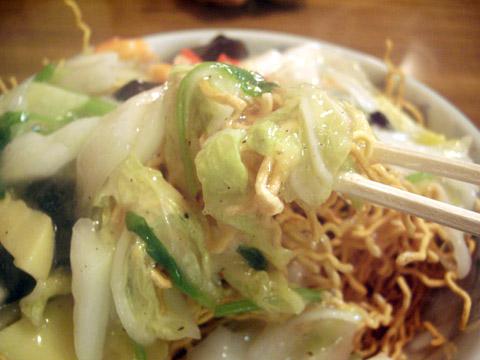 こちらのメニューに「揚げ焼きそば」は何種類かありますが、今回はエビがごろっと入った「エビ揚げ焼きそば650円」を食べることにしました!店員さんが持ってきたときのあのボリュームを見たときはびっくり感動です(ただ、私が大盛り好きなだけかも)!濃いめの味がお好きな方には、なおさら好きなお店ですよ。揚げ焼きそばのパリッとした麺が、あんによって少ししなびてくるところがおいしいんですね! ...続きを見る |