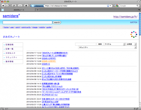 すぐにご自分の「さみだれノート(ブログ)」が作成され、