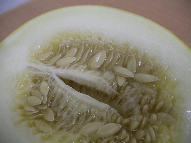 ▼白色系の果肉はプリンスメロンに似ています