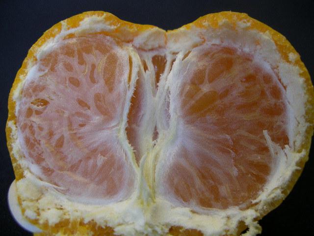 山北温室みかんは、皮はうすくむきやすく、果肉はとても緻密です。