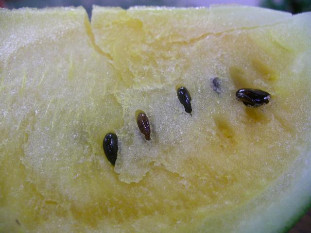 黄色いスイカのアップです!赤いスイカと大きな味や食感の違いは感じません。