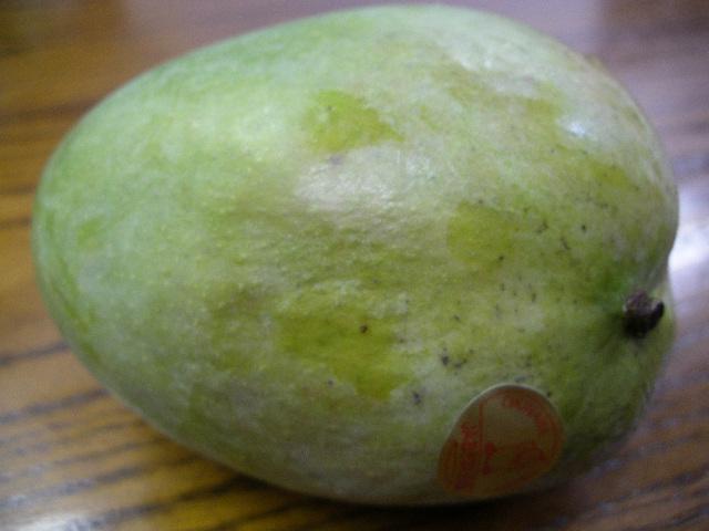 大ぶり「キーツマンゴー」は緑色のままです。