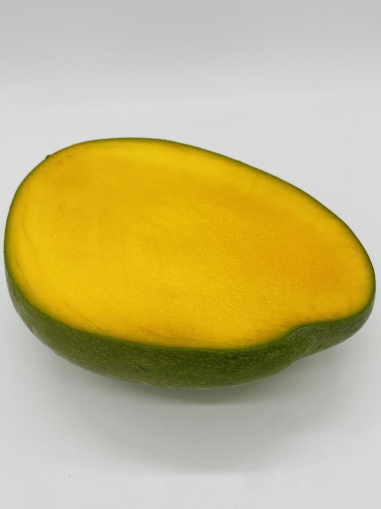 カットすると、緑色の果皮からは想像できない鮮やかなオレンジ色の果肉が現れます。
