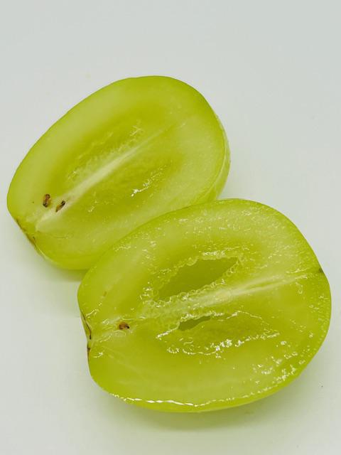[画像]なぜ、種が無いのですか?種無しぶどうにするための作業があるんだって。 「ジべレリン液」という植物ホルモンに浸すことで、種が出来なくなるけれど、 希に種があったり、小さい種があったりもするんだって。 ●画像 (大 中 小) ●2024.01.12 ●編集