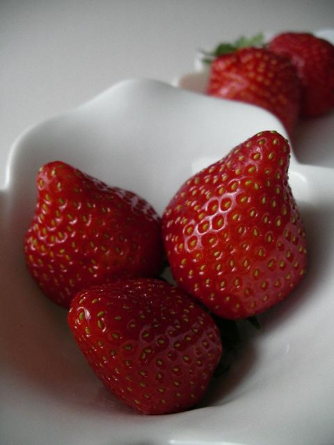 ▼つやのある鮮やかなレッドの「とちおとめ」・・