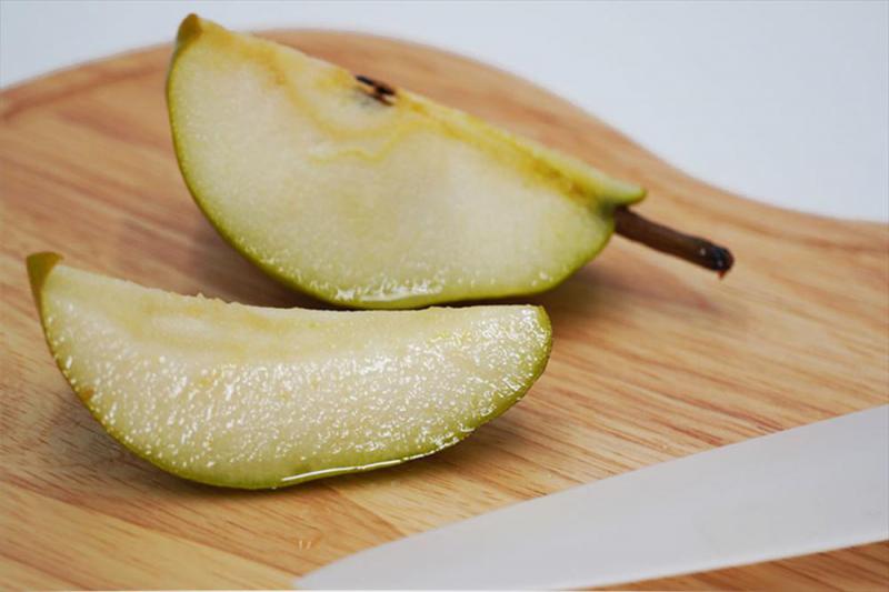 滴れ落ちる果汁。まさに今が食べ頃のラ・フランスです。
