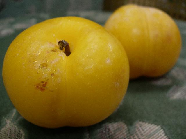 黄金色(ゴールド)に色づく黄色くて甘〜いすもも(プラム)です。