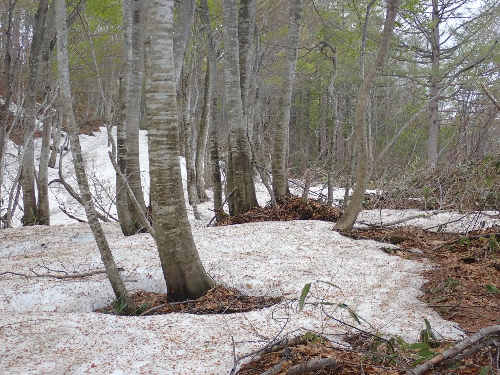 博物園8;30現在の気温8℃でした。センタ-周辺積雪2~3m深雪にサワグルミ堂々と。爽やかな月山山麓の風景です。
