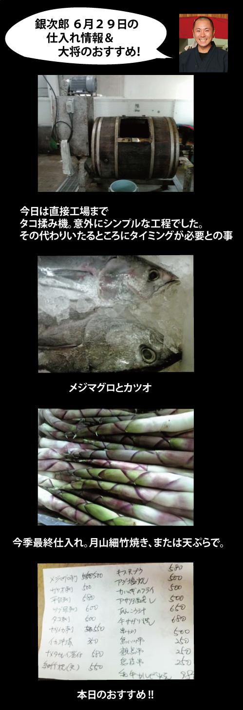 タコ揉み機。意外にシンプルな工程でした。その代わりいたるところにタイミングが必要との事 メジマグロとカツオ 今季最終仕入れ。月山細竹焼き、または天ぷらで。 本日のおすすめ 銀次郎http://ginziro.com/ 銀次郎モバイルhttp://ginziro.com/m/ |