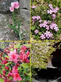 池のほとりにひっそりと咲く菖蒲(左上)などなど。