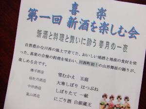 昨晩、川西町「割烹・喜樂」主催のもと【第一回新酒を楽しむ会】が開催されました。