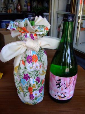 実は風呂敷も見直されてきているんですよ! 当店では風呂敷ラッピングを始めました! 画像は 一枚の風呂敷と一本の輪ゴムでお酒の瓶を包んであります。 華やかな柄とフリフリした包み方でドレスアップできますよ♪ いろいろな風呂敷をそろえました。 風呂敷の価格は300円から700円で、お好みのお酒+お好みの風呂敷代を頂戴してラッピングいたします。 風呂敷は包んで差し上げた後も、使ってもらえるのがいいですよね! きっと喜んで頂けると思います。お祝いの贈り物などにいかがですか? ...もっと詳しく |