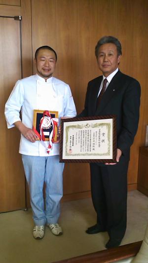 先日の「第19回優良経営食料品小売店等全国コンクール」の報告をしに高畠町役場に行って来ました。 今回、南陽市商工会の寒河江さんと高畠町商工会の佐藤さんには本当にお世話になりました。 緊張して若干自分の顔がひきつってしまいました。 スモークハウスファイン |