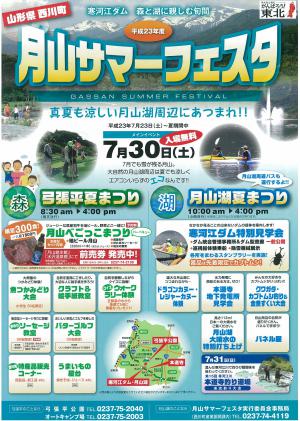 【月山湖夏まつり】 7月30日(土) 10:00〜16:00 寒河江ダム月山湖では、普段は入ることのできない「ダム管理事務所」や、「ダム監査廊」、湖面を遊覧する「巡視船体験乗船」、カヌー体験やパネル展など、様々なイベントが行われます。 【弓張平夏まつり】7月30日(土) 8:30〜16:00 弓張平では、県産和牛のバーベキューに地元の野菜や地ビール(又はジュース)もついた1セット1,800円、限定300食の「月山べごっこまつり」が行われます。 その他、魚のつかみどりやクイズウォークラリー、クラフト&絵手紙教室。焼きそば、ジュースの屋台や町特産品販売もされます。 【本道寺釣り道場渓流釣り大会】7月31日(日) 7:30〜11:30 寒河江川に設けられた管理釣り場「本道寺釣り道場」での渓流釣り大会。大物賞や大漁賞などの競技が行われ、小人の部も設けられています。奮ってご参加ください。 |