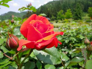 ○村山市 6月9日(土)、16日(土)、23日(土)、30日(土) 7月7日(土) 【駅からハイキング】〜花ウォーク〜バラの香りを楽しみながら、羽州村山街道まち歩き! 6月17日(日) 駅長オススメの小さな旅】東沢バラまつりと新緑の楯山トレッキング ○南陽市 6月17日(日) 【駅からハイキング】〜花ウォーク〜夕鶴伝説の地、香りのバラ園、熊野大社へ幸福のうさぎを探す旅 昨年の様子です。 花ウォーク東沢バラまつりと初夏の楯山散策が6月19日(日)村山市で開催されました! 梅雨入り前の清々しい天候の下参加者30名が、JR村山駅をスタート。 駅前の通りにはきれいなバラが植栽されていました。満開でいい香りが漂っています♪ 地元の人しか通らない道を歩きいよいよ楯山へ! 熊出没注意の看板を見ながら、七曲りコースで頂上を目指します。 ちょっと侮っていましたこの花ウォーク。山歩きがあったとは((+_+)) 頂上ではこんな素晴らしい景色が。村山盆地が一望できます。 バラ園も見えてきました。 山登りを終え、東沢バラ園に到着。バラは満開のようです♪ バラ園では村山農業高校生がガイドをしてくれました。 750種2万株のバラが咲いており、プリンセスマサコとか高貴な名前のついているバラがたくさんあるとのことです。 昼食では、山菜汁やわらびの一本漬け昆布巻きなどのふるまいがありました。 とってもおいしかったです! 皆さんあたたかいおもてなしに感激していたようです!(^^)! バラ園近くにある寿老の滝。滝からくる風がチョーきもちぃー!マイナスイオンたっぷり! パワースポットです。 観光協会長さんのお店でちょっと一服。冷たい麦茶ときゅうり漬けをいただきました。暑さもピークになっていた時間でしたので、生き返りましたね〜。 村山駅へ到着し、完歩証、記念写真、駅長さんからのお手紙、紅花の種などをいただいて解散。 山登りが続くコースでけっこうたいへんでしたが、その分いい景色を眺めることができました。 村山農業高校生のガイドもあったり、山菜汁もおいしかったし、地域の方々があたたかさのあふれた花ウォークでした。 村山市の皆さんありがとうございました! |