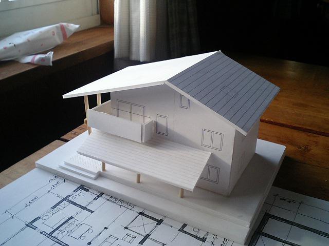 そこで、長谷川さんが出した対案が、土間スペースを外部にとった案。西側(写真右側)へひさしを約3メートル張り出させる。これで、大きなスペースが確保できるのだ。