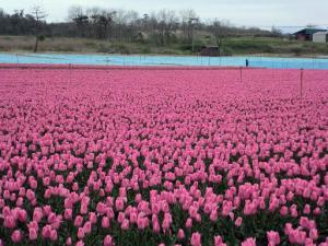 その途中で見つけた風景。 きれいでしょ〜チューリップです。 このピンクの花以外にも 赤に、オレンジに、黄色に…。 一番チューリップが美しく咲いている時季でした。 でも、ここ…観光チューリップ園???? 誰もいないし…。なんの看板もないし…。 気になったら聞いてみるのが一番!ということで 近くにいたおじさんに話を聞きました。 このチューリップは球根をとるための花なんだそうです。 数日後には花をバッサリ切ってしまうとか・・・・・・・。 もったいない。 おじさんも球根の生産者でした。 おじさんに、チューリップを数本いただきました。 ありがとうございました。 |
