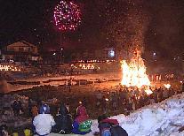 天候に恵まれ、 青空のもとで 行われました。 カメラを手にした 方々からは 「風情がないなあー、 多少雪がちらつく方が・・・。」 の吐息が出るくらいの 好天気でした。 一方担ぎ手は、 「日頃の行いだよ。 でも良過ぎるね・・・。」との事。 どちらにとっても 良過ぎたのかな。 高さ10メートルの 『やははえろ』は いつ見ても凄い。 置賜には色々と 凄いものがありますが、 この高畠の 『やははえろ』は群を抜く。 百聞一見にしかず、です。 ここにも子供会がいました。 おとうさんやおかあさんと 汗だくになって 雪灯篭を作っていました。 いつ見ても、 この光景はいいもんですね。 無病息災を祈って 行われる『わらじ神輿』、 その御利益は、 雪灯篭にありました。 |
