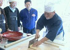 挑戦と言うみなさんが、 額に汗して がんばったのが この「そば打ち」です。 丸棒一本で 延ばす作業は、 真剣そのもの。 気持ちは分かります。 でも「そば」は なかなか思いのとうりには 行かないようです。 ひちゃばげだり、 わっ ちゃり、 もげだり。 真剣が通り越して 『大笑い』になって しまいました。 しかし、 太かろうが細かろうが、 ひちゃばげようが、 「そば」は 食ってなんぼの世界。 茹であがった 「そば」 のうめごど。 つるつると なんぼでも ノドを通過しました。 取材で教わりました。 人は新しい事に 立ち向かうとき、 思わぬ力が出るもんだと・・・。 この力こそが 若さを保つ 特効薬であることを。 うめがったす。 まだ、かしぇどごえなっす。 |