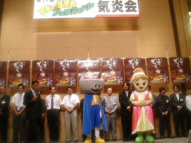10日後に迫った本番にむけ、芋煮マン・里子ちゃんも加わり気勢をあげた。