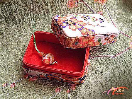 蝶模様の江戸縮緬小箱2点と絽縮緬小箱(奥の円筒型)1点、【江戸縮緬】は江戸時代に作られた縮緬全般の総称、主に日本の自然を表した模様を写したもの。現在、「江戸縮緬」といわれているもののほとんどが、明治期のものと言われています。この蝶模様の江戸縮緬も細い糸で織られて経年から焼けなどがありましたが、その風合いは現代縮緬にない趣きがあり肌触りも良い生地です。生地の一部には継ぎはぎがありましたが、刺繍糸で上手に手を加えてあり、先人の大事に着ていた事が良くわかりました。...【絽縮緬】は昭和初期に流行した夏の着物地 絽目という隙間があリ、柄も涼しげなものが多いようです。同じ生地で根付がありますが、27ミリです。