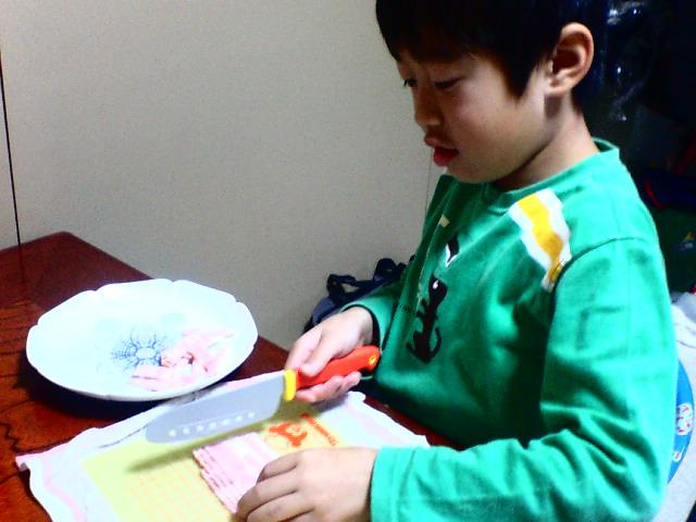 慣れない包丁さばきがドキドキはらはらさせますが