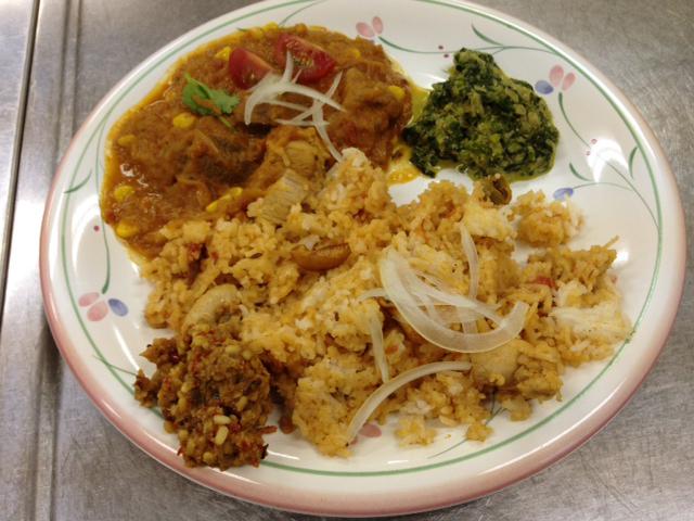 王侯風鶏のコルマのごはん料理という意味で、コルマはヨーグルトや生クリームを使った料理のことです。鶏のコルマーを作っておきそれを炊きあがったごはんに混ぜ合わせたという豪華な料理です。
