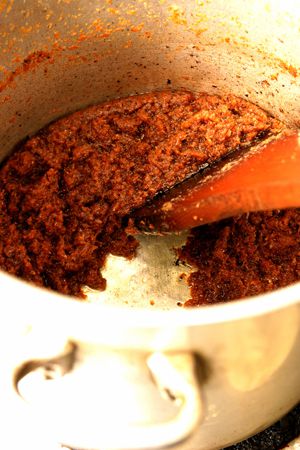 タマータル(トマト)のすり潰し、ここで火を強くし