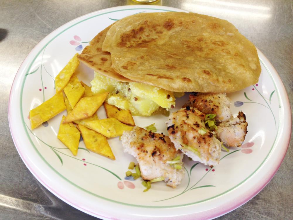パロータというチャパティの中にギィーを入れ、油で焼いたパン、チャクラ、ベーランを自前のをもってる人にはもってきてもらってと。パラースものばすので、自前のチャクラ、ベーランでのばし切って油であげるといったスナック。