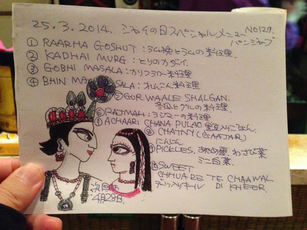 ジャイの日の材料は多田君に業務スーパーの大野目店に雨の中連れて行ってもらったので何とか材料が揃った。午前中病院により、先週は病院に行けなかったので、2時まで店へ。久世さんが来てくれ、まずはコーヒーブレイク。チャトニーとピクルス、スイーツは作ってあるので、ラムも1/3挽肉にしておいた。