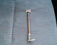 簡易的にはこれでいいと思いますが、本格的に楽しむには不満です。 不満の理由 1.地デジ(ワンセグ)の放送の電波はほとんどの送信所が「水平偏波」なのに、ホイップアンテナは 「垂直偏波」。 偏波の違いだけで受信状況はかなり変わってきます。 建物等の反射で偏波は変わるとも考えられ、指向性がない、という事でホイップアンテナを採用されているものとは思いますが、私の体感では、指向性かあるとしても偏波が合ったアンテナのほうが受信状況はいいようです。 (ホイップアンテナを横にして使用するという考えもありますが・・・この手のアンテナはベース部分が金属に付いていないと特性が出ません。) 2.ケーブルが細い 地デジ(ワンセグ)のUHFの電波ともなると、付属のケーブルの太さでは相当電波が減衰すると思います。しかもそれが3mも長さがありますから・・・ (アナログテレビのUHFの受信状態の悪さの主要因はケーブルの細さから来ているのでは、と思っている位です。) 車内での配線のし易さという面では現状のケーブルは止む無しですが、性能を考えればNGです。 以上の理由から、私は写真のような水平編波のアンテナを自作してつないでます。 基本的には2分の1波長のダイポールアンテナですが、家庭用のUHFアンテナを参考に蝶型のエレメントにしています。 (こうする事で広い周波数に対応できる。) アンテナとコネクタの間の銅板を巻いたケーブルは、「バラン」と言われる仕掛けです。 アンテナは左右対称構造ですが、チューナ側の同軸ケーブルは芯線と網線の関係が「対象構造」ではありません。それを間を取り持つのが「バラン」です。 アンテナとチューナの間は、直径5mm程(これでもUHFの電波に対しては決して「太い」という程のものではありませんが、)の3C-2Vという家庭のテレビで使用されるケーブルを最短(30cm程)で使用しています。 ちなみにアナログテレビのアンテナは同じ構造のものを、後ろの固定窓に貼って使ってました。場所選びますがこれで山越えの県外局も受信してました。 |