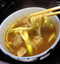 今朝のいわて花巻は寒かったですねー(>人<;) 寒がりの私かじやのメガネおじさんは、先日ユニクロで買ったヒートテックで寒さをしのいでおります(^_^;) というわけで今日の昼ご飯は「カレー南蛮うどん」にしました♪ |