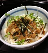 今日の昼ご飯は「冷たい納豆おろしうどん」です♪