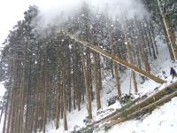230年ともなると、雪の重みに耐えられなくなり、斜めになったり、