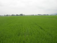 田んぼは濃緑色に変わりました。我が家の前に広がる広々とした水田には一面に緑の世界が広がっています。