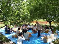 だからどうしたのと言われそうな話だけど、まぁいいじゃないですか。とてもうれしいひとときだったのだから。というのはさ・・・。 友人の大工さんに頼んで鶏舎を一棟建ててもらったのが始まりだ。その大工さんと、出来上がった鶏舎を眺めているうちに「落成を祝う会」をやろうということになった。友達と一緒になごやかな時間を過ごすのが大好きな僕は、さっそく知人、友人に呼びかけた。 「来たる12日、我が家の鶏舎の前にて、ささやかな野外酒宴をもちます。会費は千円ですが、一品持ち寄りできる方、またはお酒を持参される方はお金はいりません。なんでもいいんです。その辺の雑草をさっと茹でたものとか・・・うふふ。なんでもいいんですよ。我が家で準備できるものは私が握ったおにぎりと、おなじく私が焼いたたまご焼き、それに少しの飲み物ぐらいですけど。だから・・・本当にお気楽においでください。」 急な思いつきの、急な案内にもかかわらず大勢の人達がさまざまな料理をもって集まって来てくれた。 ポトフ、ダンゴ、豚ヒレのワイン蒸し、アジのから揚げ、根わさびとお刺身、ふきの煮物、ワラビの醤油煮、豚肉のチャーシュー、山菜のおひたし、竹の子の煮物・・・鶏舎の前の木の下にシートが敷かれ、たくさんのご馳走が並べられた。それらをいただきながら、小さなパーティが始まった。 料理がおいしい。ぼくのつくった玉子焼きとおにぎりも好評だ。テーブルをかこんで、始めて会った人どうしが談笑している。 澄んだ青空に白い雲。緑いっぱいの木々の下、木洩れ日がそそぎ、さわやかな風が頬をなでる。コッコッコッコッというニワトリたちの穏やかな声を聞きながら、すてきな時間が流れていく。 「孫にね、ニワトリを見せたくてつれてきました。」 「私はここのところ、他人と会いたくなかったのです。でも、来てよかった。」 「息子がね。学校をやめて農業したいというんです。ニワトリを飼ってみたいって。」 「なんかねぇ、去年まで全部の田んぼを無農薬でやってきて、草とりが本当に大変なんだよね。もう年だし、今年はそこまで無理するのはやめようかと話し合っているんですよ。」 みんなが素直に自分を語っている。農民も郵便局員も、大工さんも、主婦も、お坊さんも、学校の先生も、パートの勤め人も・・・。いま、ここに居ることが本当にしあわせだと思えるようなひととき、やわらかな空気。 だからどうしたのと聞かれると困るんだ。ただそれだけなのだから。 でもね、それがとってもあったかくてさ、ありがたくてよ。なんか生きててよかったなぁって思えるんだ。 それだけのことなんだけどね・・。 |
